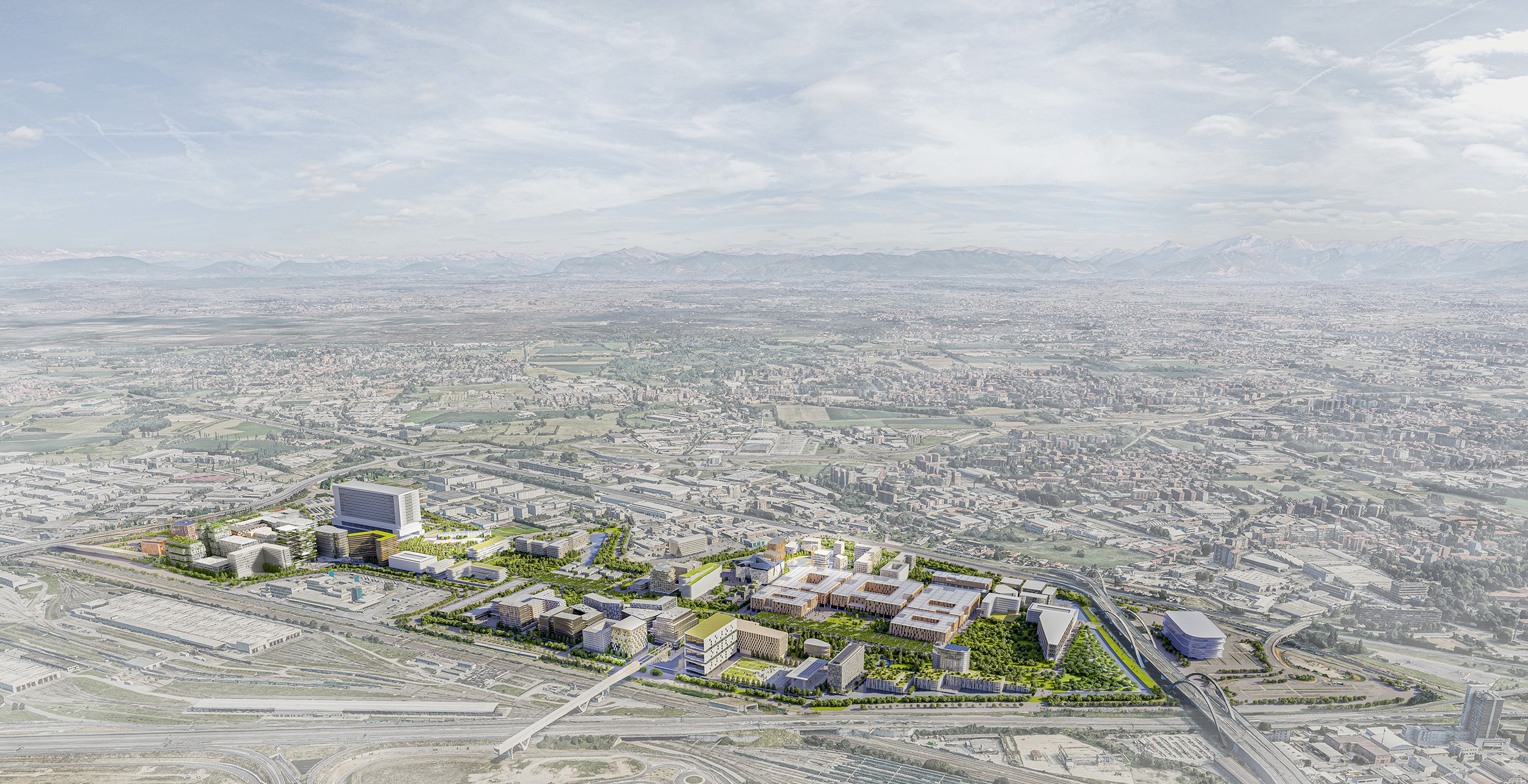 Per gli spostamenti più lunghi è attivo un servizio di navette interne, già operativo e destinato a crescere insieme allo sviluppo dell’area, oltre a tutte le connessioni con il trasporto pubblico urbano e regionale.